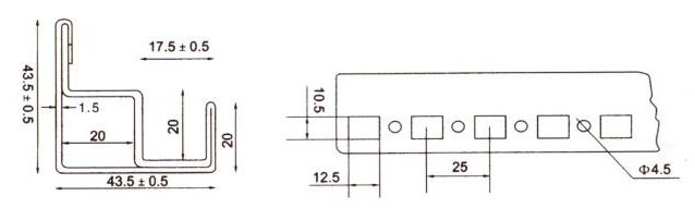 4.九折型材上均每25mm配有圓形孔和方孔(共同裝置利用)令外部裝置及牢固儀器很是便利快速